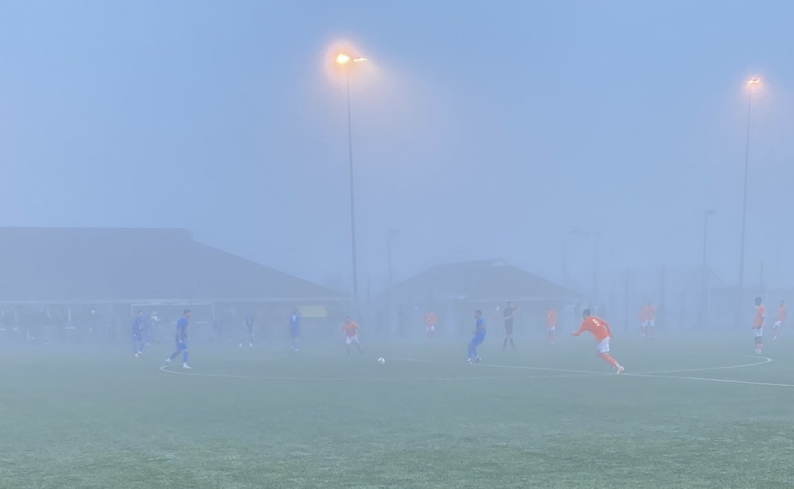 After a 75-minute car journey, the scenes we were met with on arrival at the Nationwide Windows Arena did not look encouraging. A localized sheet of fog had descended on the ground which made it impossible to see from one side of the pitch to the other. There was much discussion among the travelling supporters as to whether our journey had been for no other purpose than to consume a cup of steaming hot coffee/soup/Bovril before heading back home. However, our match Referee decided, after much deliberation, that the game should go ahead as planned. It was a brave decision to make, but one which we would ultimately thank him for making.