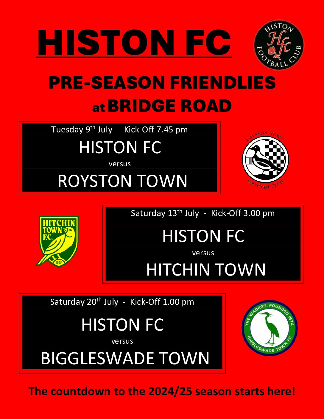Get dates in your diaries for our Pre-Season Friendlies at Bridge Road.